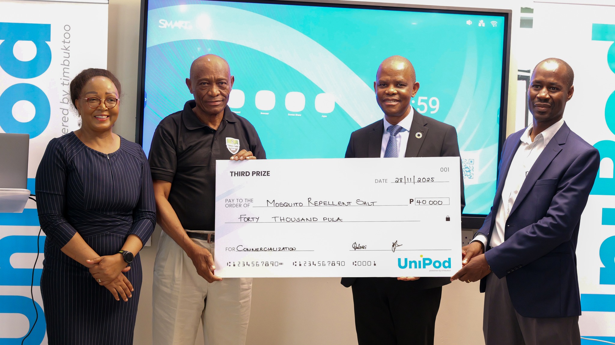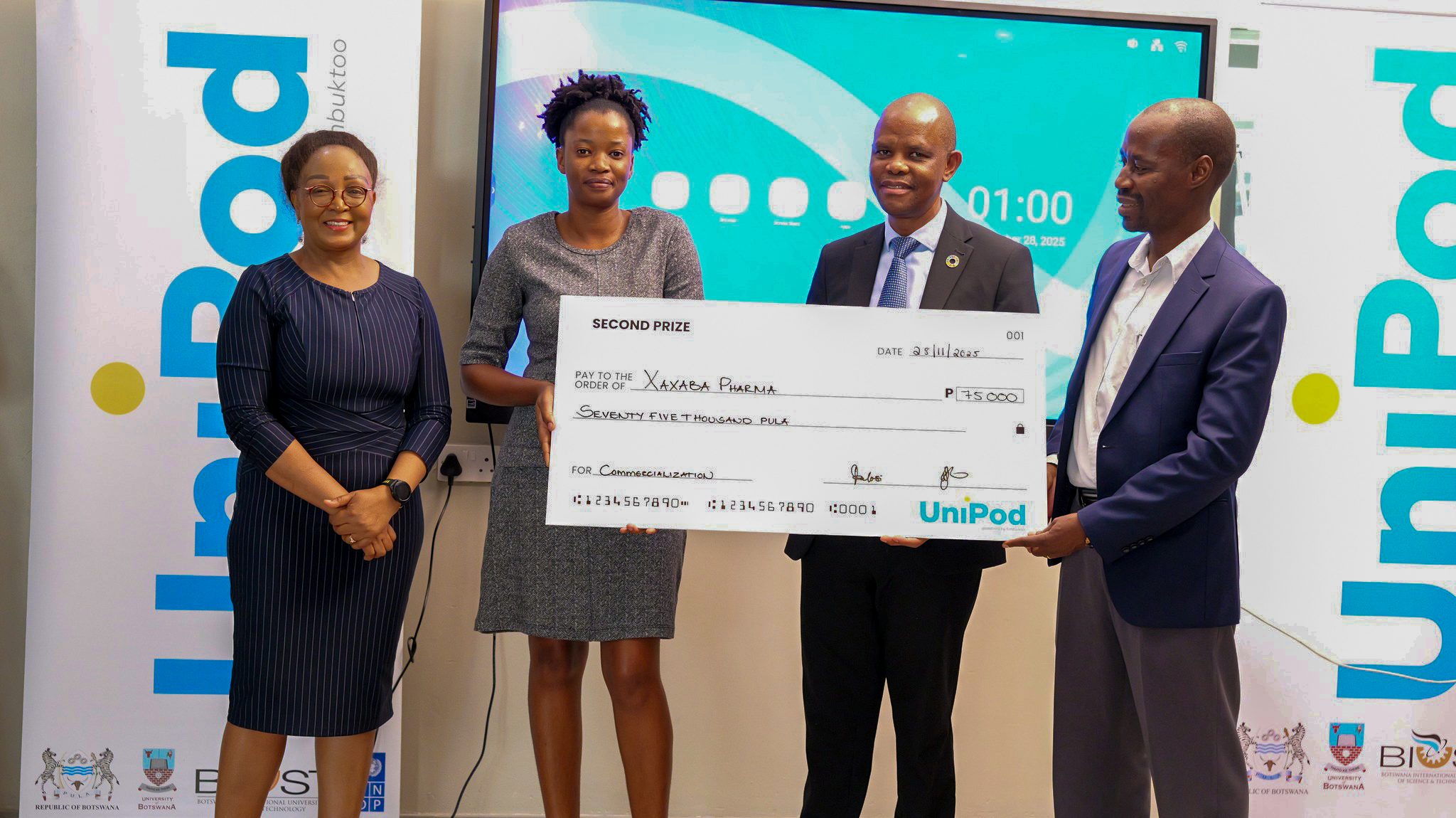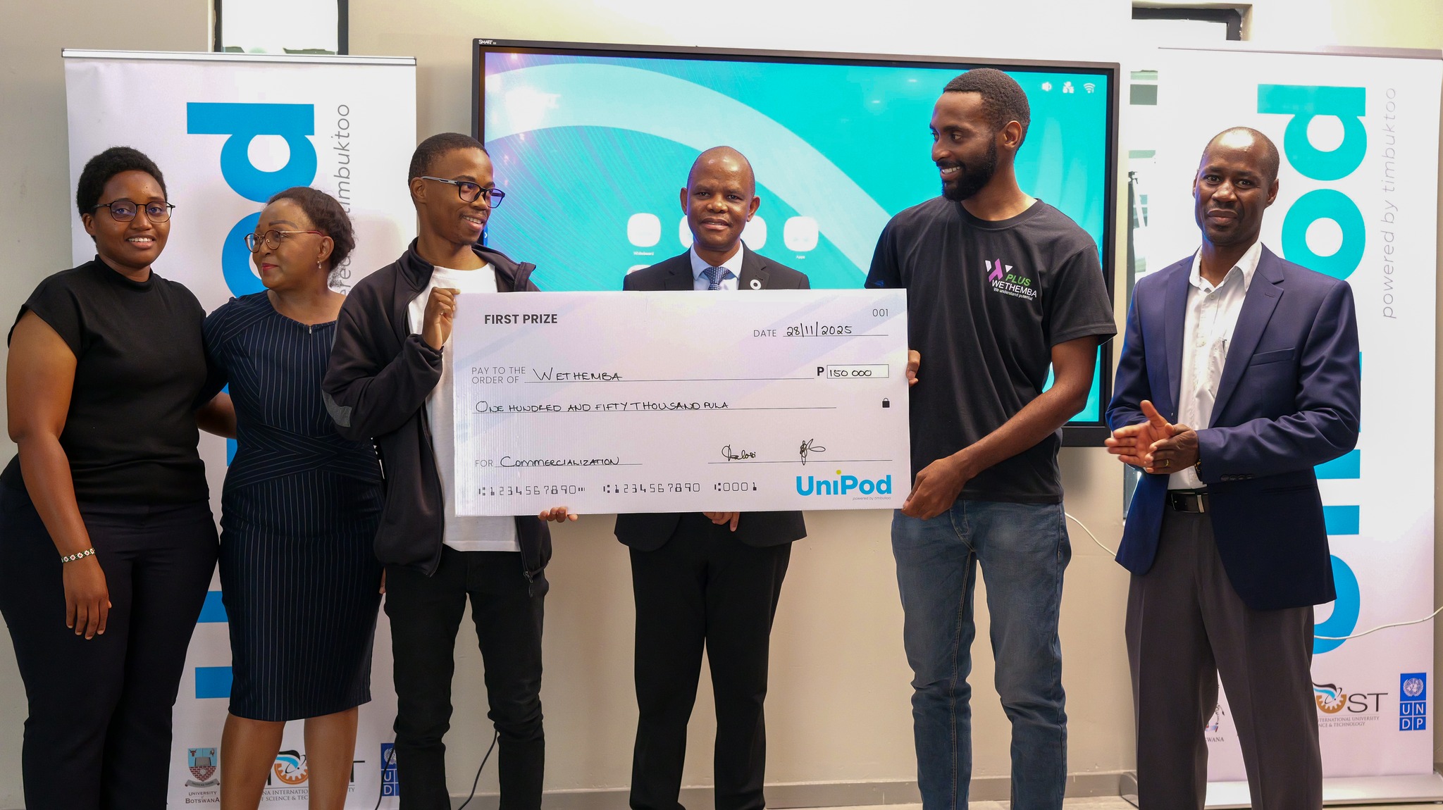The programme culminated on 28th November 2025 with the Pitch Competitions, where nine teams showcased their brilliant solutions. Wethemba took first place with P150,000, Xaxaba Pharma claimed second with P75,000, and Mosquito Repellent Salt secured third with P40,000. The winner's prize money from UNDP is aimed at supporting the start-ups to commercialize their innovative solutions.